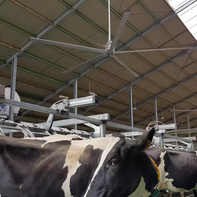 HVLS är en långsamt roterande fläkt med en diameter på upp till sju meter. Fläkten har stor kapacitet med låg vindhastighet. Fläkten ger en mild bris i din ladugård. HVLS monteras horisontellt och trycker ner luften till djuren. Eftersom HVLS täcker stora ytor är denna fläkt extremt lämplig för kylning av foderbord, väntfålla, eller ströbädd. Den något mindre tremetersversionen används ofta i väntfålla för mjölkrobot. HVLS är utrustad med en direktdriven EC-motor. Detta gör fläkten extremt energieffektiv och underhållsvänlig.